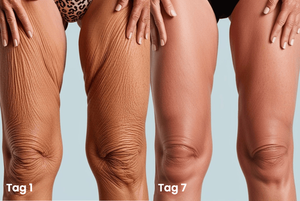 “Ich konnte bereits nach einer Anwendung spüren, wie meine Oberschenkel straffer wurden. Es fühlte sich wirklich wie Zauberei an!“ Die Veränderung war sofort sichtbar, und ich konnte kaum glauben, wie glatter und straffer sich meine Haut anfühlte.